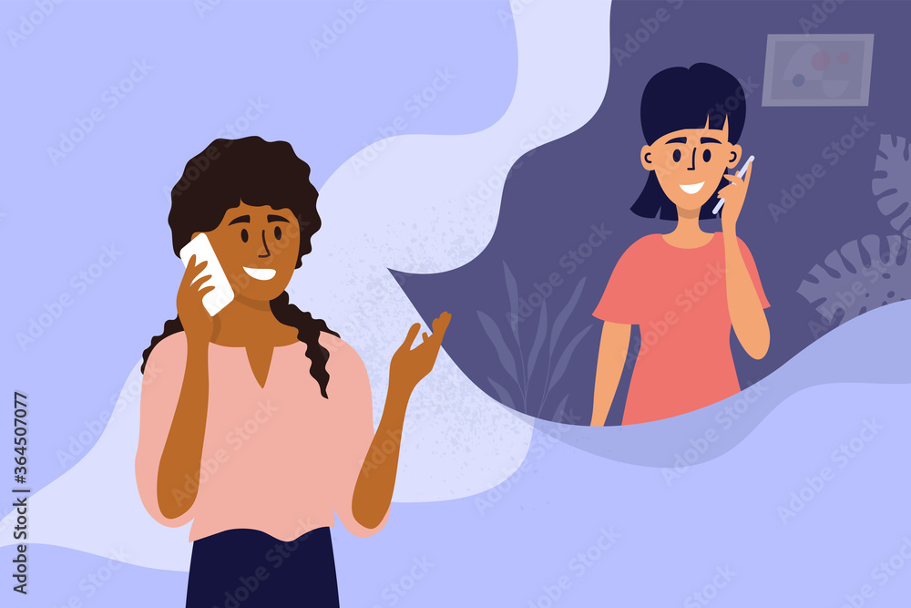Couple Of Young Women Talking On Mobile Phone Black Girl Calling Friend By Smartphone People Conversation Female Partners Dialogue Social Distancing Conversation Characters Vector Illustration Stock Vector Adobe Stock
